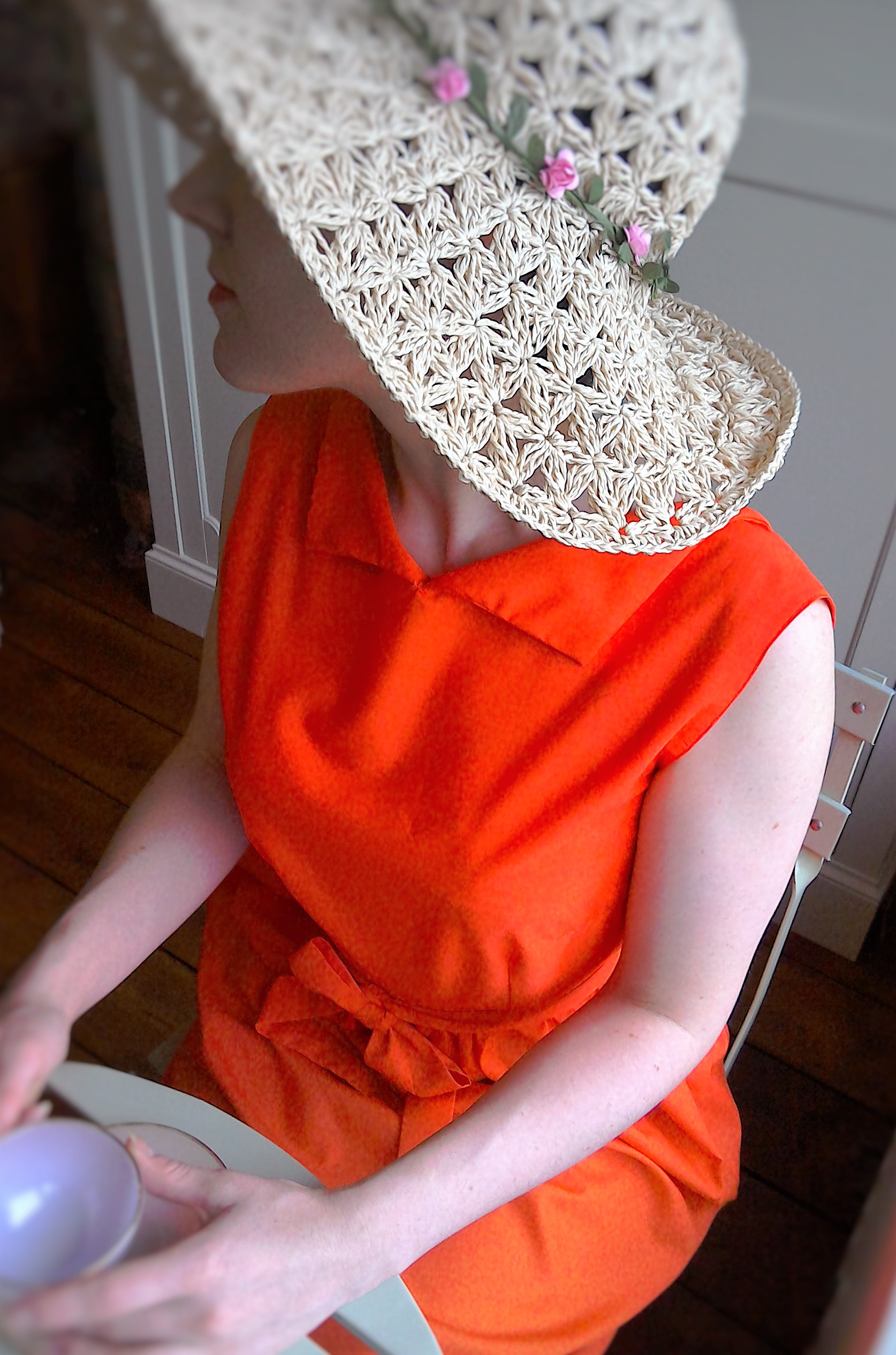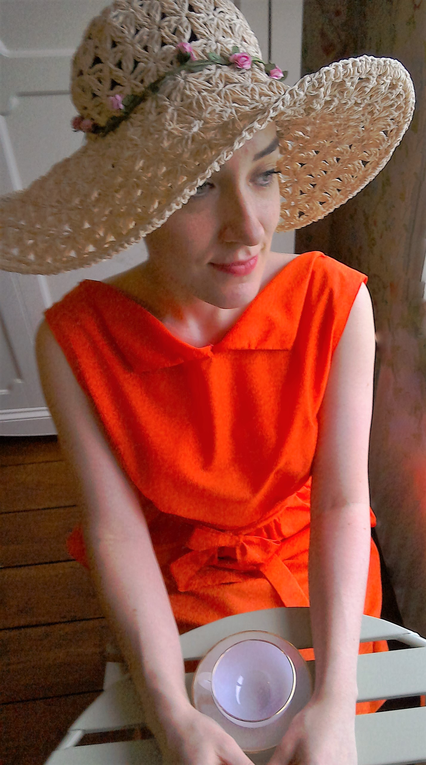 This dress is worn by Audrey Hepburn as Gaby in ‘Paris When it Sizzles’. I have only watched this film again because of the dress. The interest is at the back, but the collar, tulip skirt and front bow keep the front from being plain. I have yet to find cream kitten heels, but my camel pair from Next go well. My straw hat was from Primark! The pearl earrings are from a vintage market.