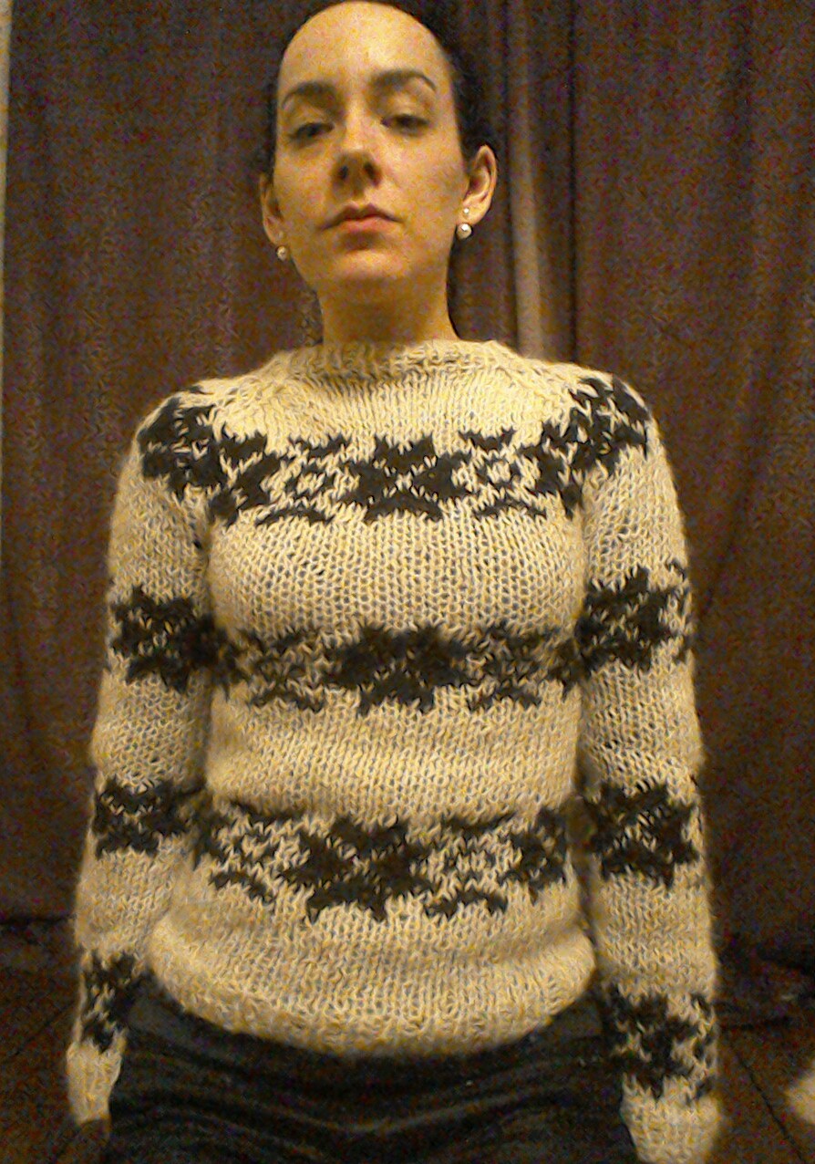 Home knitted version of Sarah Lund’s jumper-The Killing series 1-my jumper-Snowflake pattern-fairisle Posted on 27/11/201630/07/2017 by The Girl