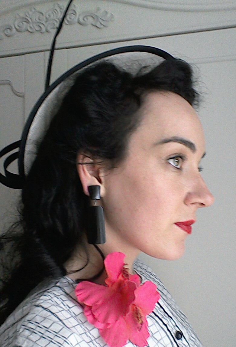 Black and cream hat with feather – Forties half up hairstyle- side veiw 2 Posted on 22/08/201723/08/2017 by The Girl